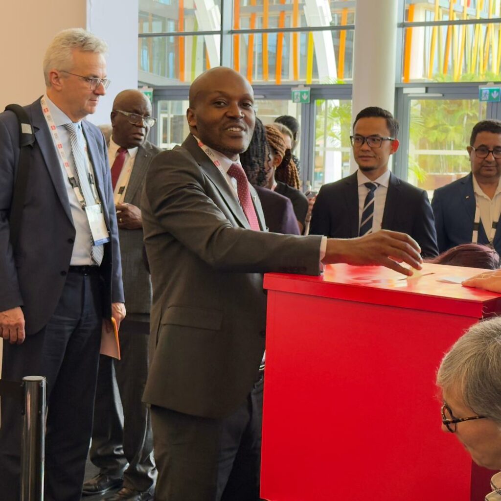 Eng. James Kasigwa casts his ballot during the ISO General Assembly held in Kigali, Rwanda