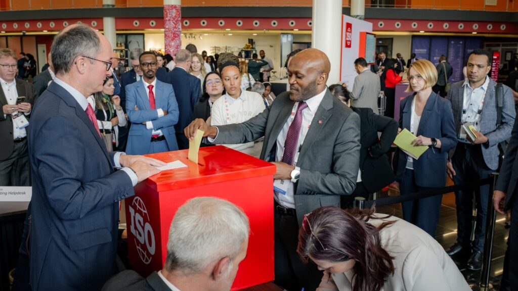 Eng. James Kasigwa casts his ballot during the ISO General Assembly held in Kigali, Rwanda